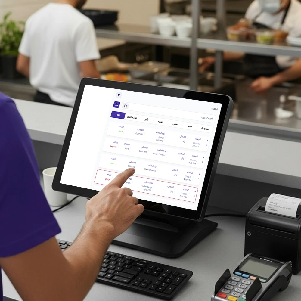 إدارة مكالمات العملاء من مكان واحد، مع ربط مباشر بنظام نقاط البيع لتسجيل الطلبات وتحديثها بسرعة.